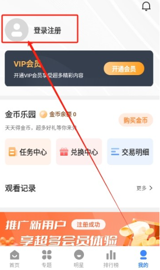 3、点击上方头像,进入登录页面